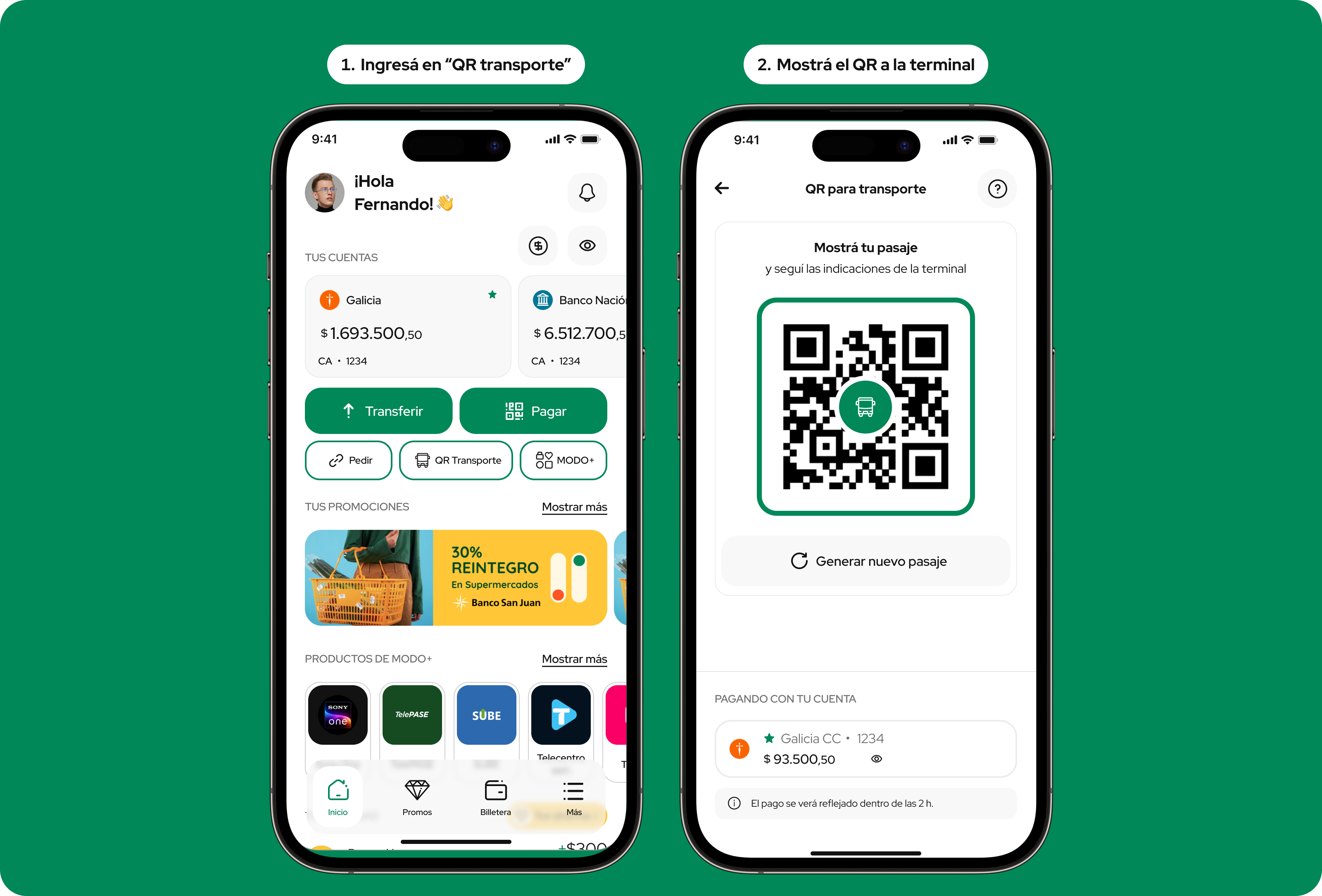 Por el momento, podés pagar transporte con QR con tus cuentas asociadas a MODO, no con tarjeta de crédito. Tené en cuenta, que el cobro se realizará dentro de las 2 hs posteriores a tu viaje.